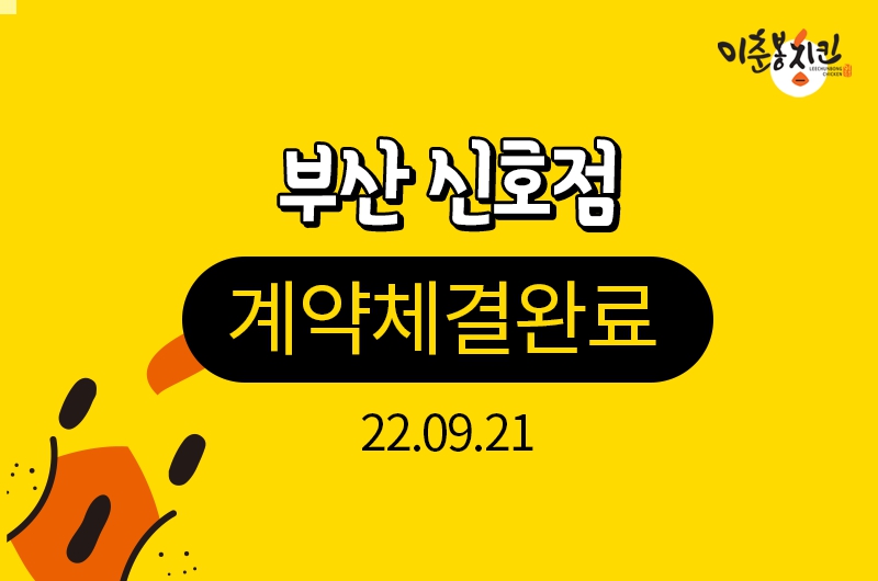 이춘봉 치킨부산 신호점 계약체결완료 [계약일] 2022. 09. 21 [매장(예정)주소]부산 강서..